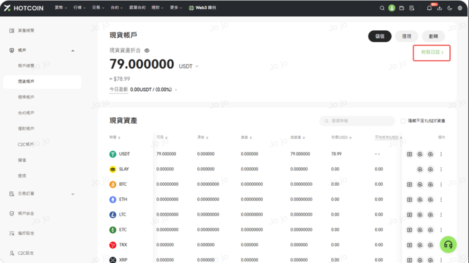 付款方可透過以下路徑查看交易詳情: 總資產折合 > 現貨帳戶 > 財務日誌